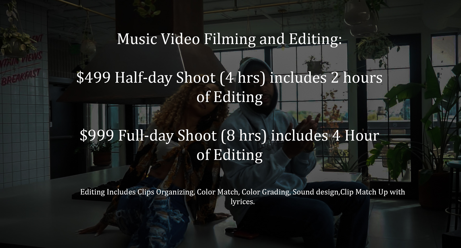 Music Video Filming and Editing Package $499 or $999